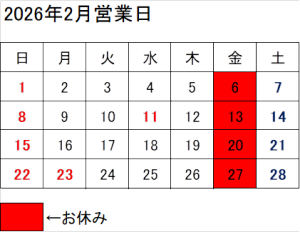 2026年2月営業日