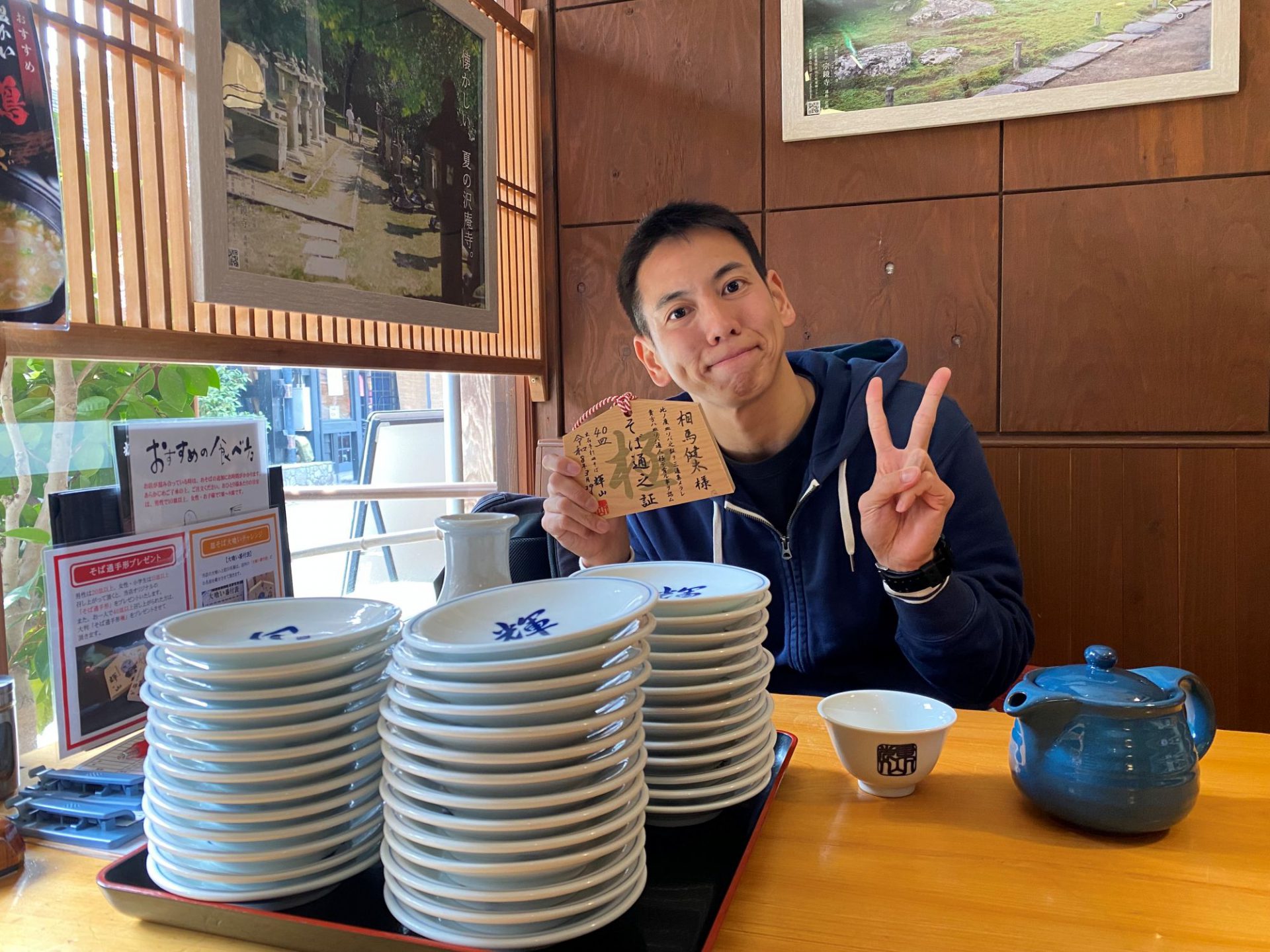 2026年3月29日(日)伊丹市からお越しのお客様、40皿完食で「そば通手形極」プレゼント!